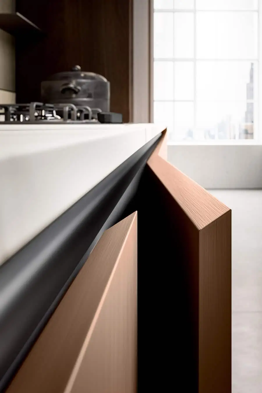 Ogni centimetro conta in una cucina piccola. Scegli mobili della cucina con apertura senza maniglie, rubinetti a scomparsa e cestini per la spazzatura incassati per ottimizzare al meglio lo spazio.